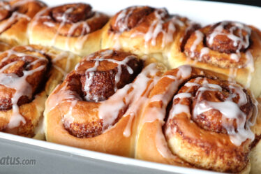 Una vez frío, decora el bizcocho. Mezcla el azúcar glas con la pizca de canela y añade la leche poco a poco, hasta conseguir una textura fluida pero densa. Reparte este glaseado por toda la superficie con la ayuda de una cucharilla. También puedes decorar la superficie espolvoreando azúcar glas.