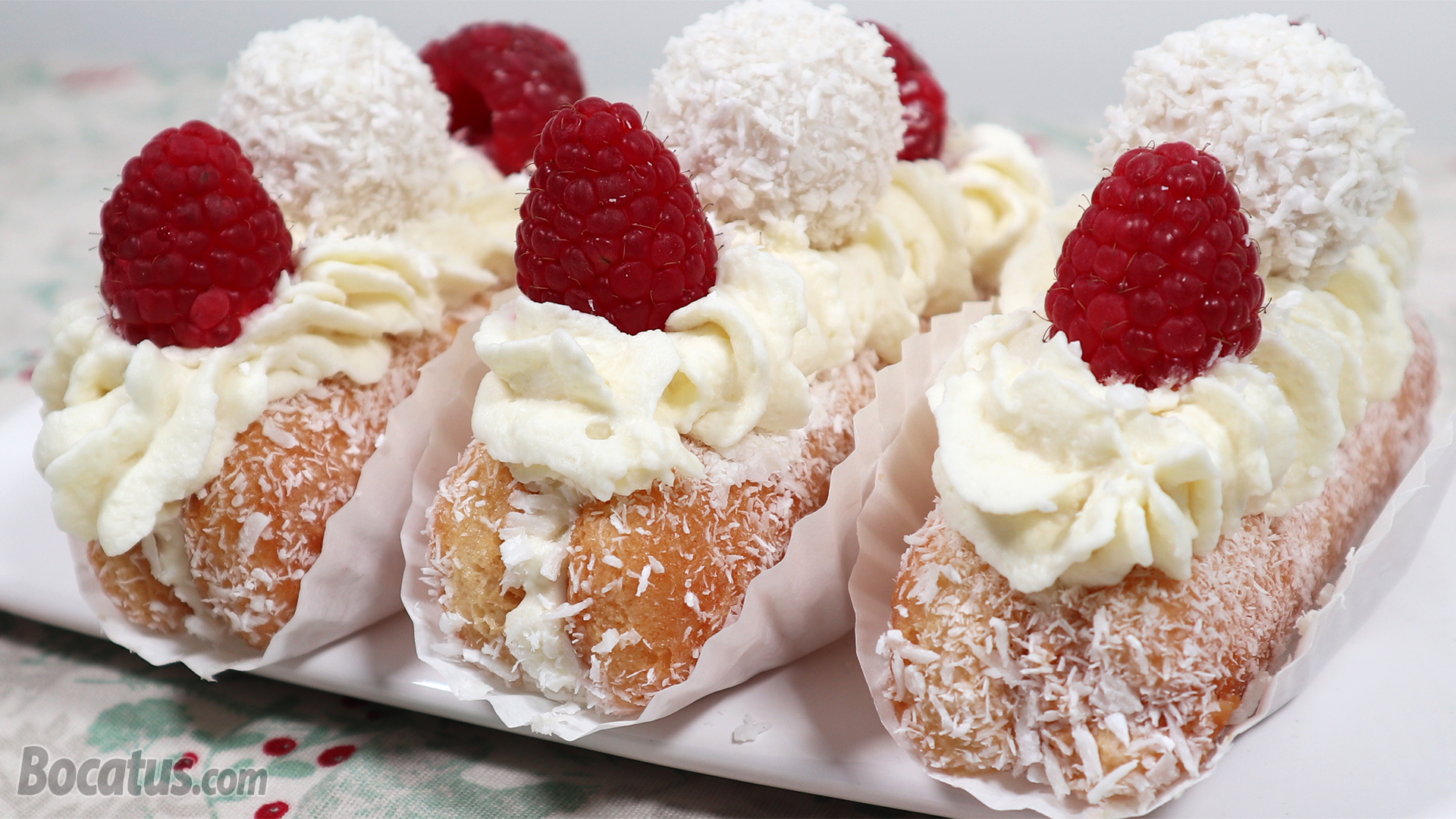 La clave de estos pasteles está en la crema: una mezcla tipo mousse de nata montada, chocolate blanco fundido y coco rallado, ligera pero con cuerpo, que combina a la perfección con los bizcochos de soletilla ligeramente humedecidos en leche. El resultado es un bocado equilibrado, nada empalagoso y muy agradable.